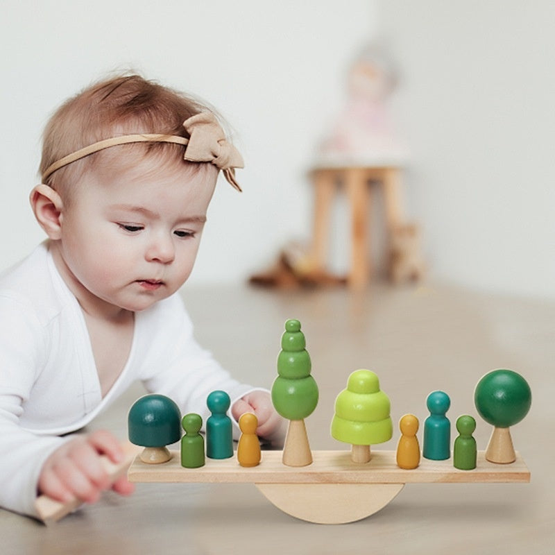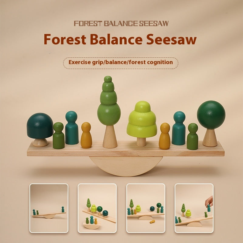 Children's Solid Wood Color Building Blocks Forest Seesaw Toys